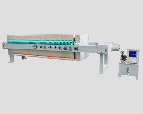 壓濾機適用范圍廣,結構簡單。板框的壓拉、排渣和濾布清洗均可自動化,有利于壓濾機的大型化發展。在壓濾機的過濾室中加入彈性橡膠隔柵后,過濾完成后,可以用高壓水或壓縮空氣通過橡膠隔柵對濾渣進行壓縮,使濾渣進一步被擠壓脫水,形成一個容積可變的濾室,濾渣被壓縮。擠壓過濾,壓力可達1~2 MPa。